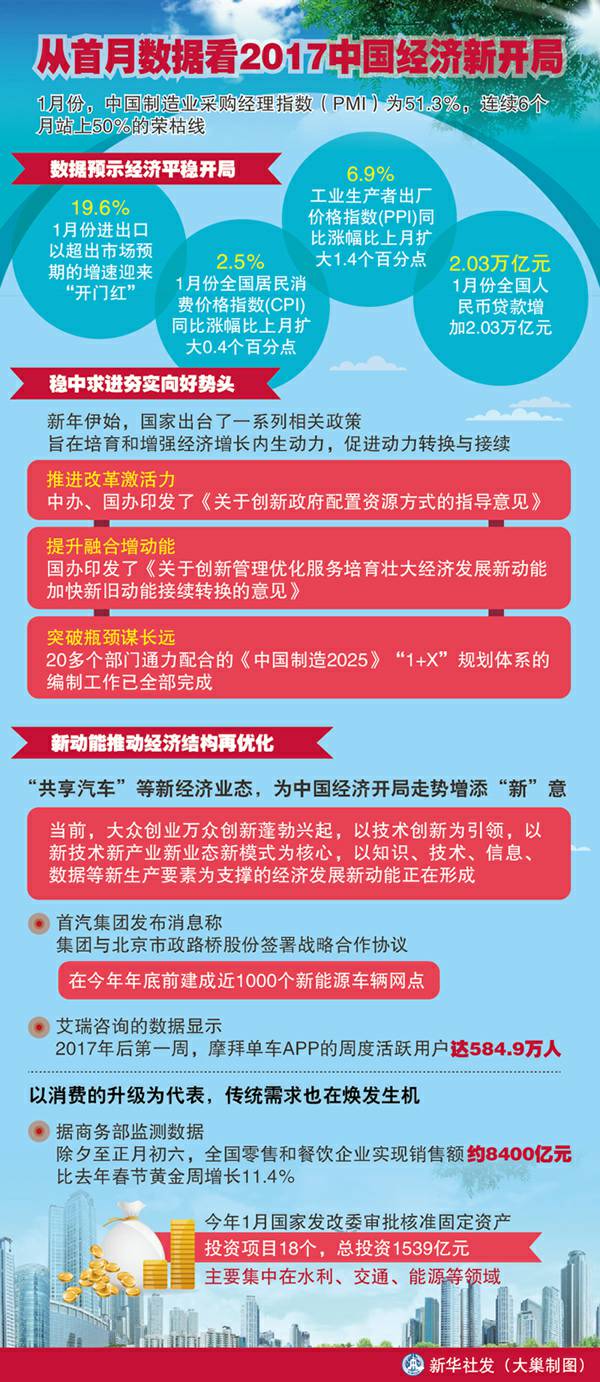 图表:从首月数据看2017中国经济新开局 新华社发 大巢制图