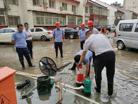 8月4日傍晚至5日清晨的连续暴雨,致使城区多地积水形成内涝。最为严重的于家园三期14、15号、17号楼,府前东街九号院,中铁十六局怡安家园,由于设施陈旧排水不畅,造成小区积水齐膝,严重影响居民出行,居民生命财产受到威胁。