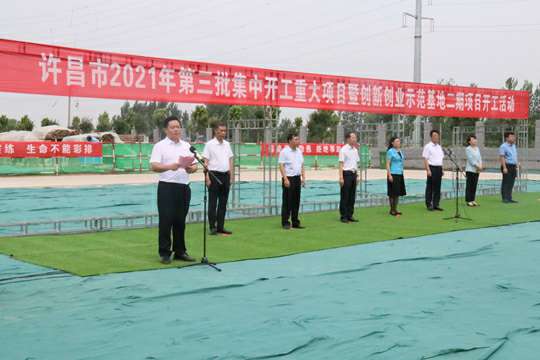 7月10日上午,河南省许昌市2021年第三批集中开工重大项目暨创新创业示范基地二期项目开工仪式顺利举行。许昌市委常委、纪委书记、监委主任方婷,魏都区委书记李朝锋,区人大常委会主任申健民,区政协主席杜晓辉,区委常委、区委办主任程中山,区委常委、区纪委书记、区监委主任徐光,魏都产业集聚区管委会主任楚文选,爱游戏最新官网-爱游戏(中国)河南分公司总经理黄辰,魏都区政府相关部门、投资公司、产业集聚区、霸陵办事处等单位负责人参加活动。区委常委、常务副区长张挪威主持仪式。